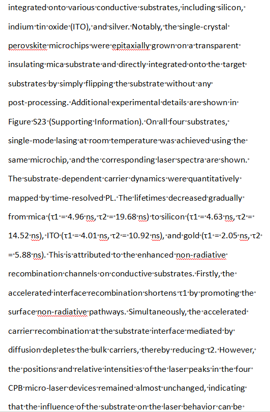 neglected. These perovskite microchips with well-defined trenches exhibit stable and controllable lasing behavior on different substrates, suggesting their considerable potential for related chip integration.