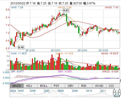 今 開: 7.18 成交量: 92739手 振 幅: 1.25% 最 高: 7.25 成交額: 6682.75萬 換手率: 0.98% 最 低: 7.16 總市值: 75.72億 市凈率: 2.54 昨 收: 7.18 流通市值...