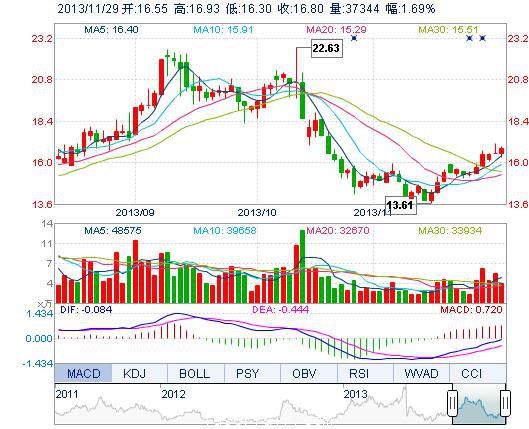 | 今 開: | 16.55 | 成交量: | 3.73萬手 | 振 幅: | 3.81% |