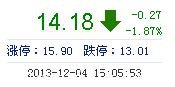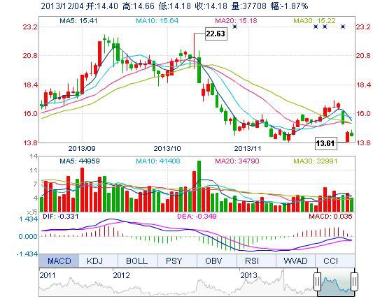 | 今 開: | 14.40 | 成交量: | 3.77萬手 | 振 幅: | 3.32% |