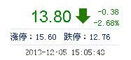 | 最 高: | 14.10 | 成交額: | 3692.45萬(wàn)元 | 換手率: | 3.89% |