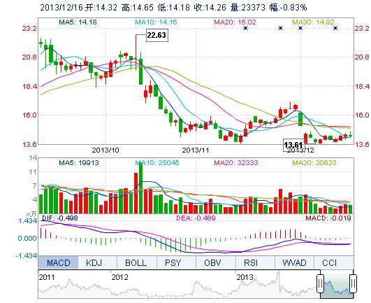| 今 開: | 14.32 | 成交量: | 2.34萬手 | 振 幅: | 3.27% |