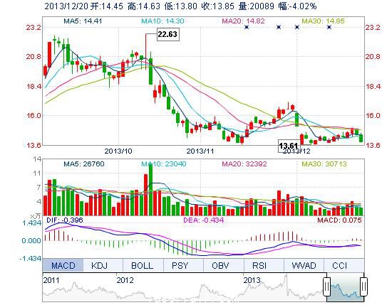 | 最 低: | 13.80 | 總市值: | 18.56億 | 市凈率: | 5.71 |