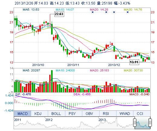 | 今 開: | 14.03 | 成交量: | 2.52萬手 | 振 幅: | 5.72% |