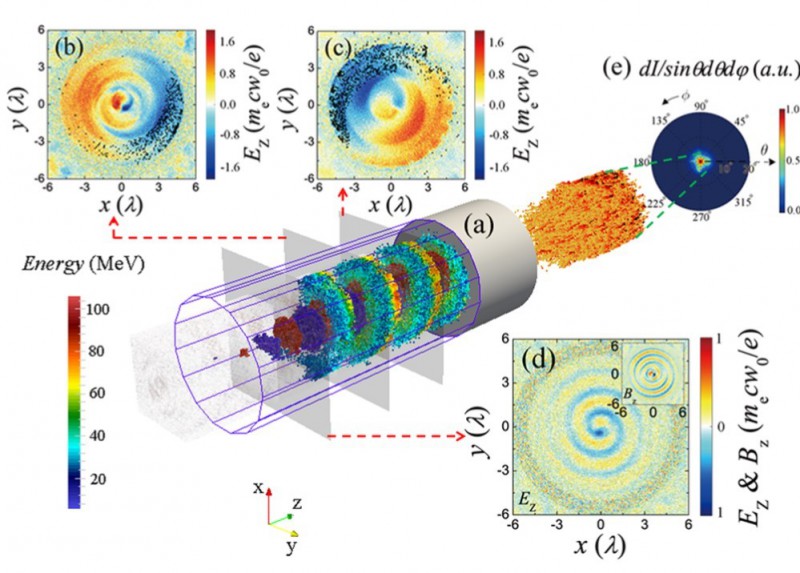 高能電子在圓偏轉(zhuǎn)超強(qiáng)激光場中加速、旋轉(zhuǎn),輻射出高亮度硬X射線