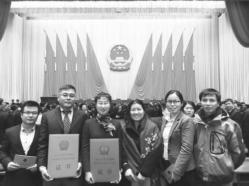 鄭婉華(左三)團(tuán)隊(duì)在人民大會(huì)堂合影。