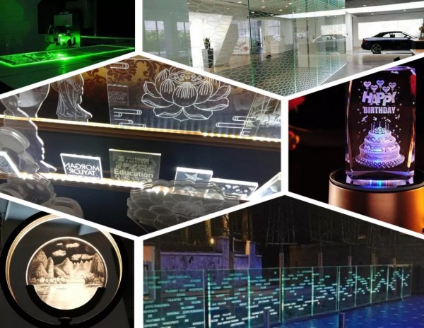 激光在人造水晶、玻璃、亞克力等透明硬質(zhì)材質(zhì)上內(nèi)實(shí)現(xiàn)二維、三維動(dòng)態(tài)激光雕刻,再通過(guò)色燈在“內(nèi)雕”圖像上混色,從而使原本本色的內(nèi)雕圖像呈現(xiàn)出五彩繽紛、光彩奪目的效果,在加以聲效的配合,一種完美的“聲光電”結(jié)合藝術(shù)呈現(xiàn)在大眾面前。