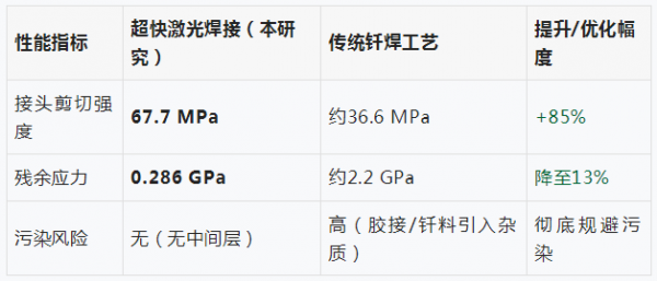 二、技術(shù)突破:超快激光實(shí)現(xiàn)無(wú)中間層高強(qiáng)度焊接