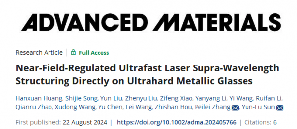 復(fù)旦大學(xué)信息科學(xué)與工程學(xué)院、上海工程技術(shù)大學(xué)材料工程學(xué)院、上海市先進激光制造技術(shù)協(xié)同創(chuàng)新中心的科研人員報道了近場調(diào)控超快激光超波長結(jié)構(gòu)直接加工超硬金屬玻璃。相關(guān)論文以“Near-Field-Regulated Ultrafast Laser Supra-Wavelength Structuring Directly on Ultrahard metallic Glasses”為題發(fā)表在《Advanced Materials》上。