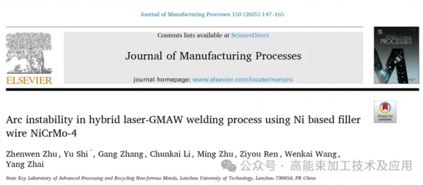 來自蘭州理工大學的研究人員在國際期刊“Journal of Manufacturing Processes”發(fā)表了論文“Arc instability in hybrid laser-GMAW welding process using Ni based filler wire NiCrMo-4”。