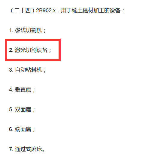10月9日,商務(wù)部、海關(guān)總署公告2025年第56號公布對部分稀土設(shè)備和原輔料等相關(guān)物項(xiàng)實(shí)施出口管制的決定,2025年11月8日起正式實(shí)施。其中,實(shí)施出口管制的物項(xiàng)包括用于稀土磁材加工的激光切割設(shè)備。此決定在國際上引起軒然大波,但筆者分析,用于稀土磁材加工的激光切割設(shè)備的出口管制對我國激光技術(shù)出口大局影響甚微。