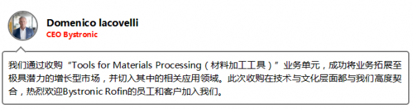 作為百超并購戰(zhàn)略的重要組成部分,此次交易將讓公司獲得知名品牌羅芬(Rofin)的相關(guān)權(quán)利,并將新收購的 “材料加工工具” 業(yè)務(wù)整合為全新的 “百超羅芬(Bystronic Rofin)” 業(yè)務(wù)單元。通過這一全新業(yè)務(wù)單元,百超將進一步豐富激光技術(shù)應(yīng)用的產(chǎn)品組合,拓展高潛力增長市場中的相鄰應(yīng)用領(lǐng)域,完善從宏觀到微觀的全場景激光加工解決方案。