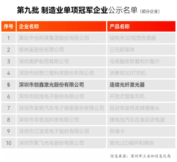 創(chuàng)鑫激光連續(xù)光纖激光器入選國(guó)家級(jí)“制造業(yè)單項(xiàng)冠軍”并完成公示