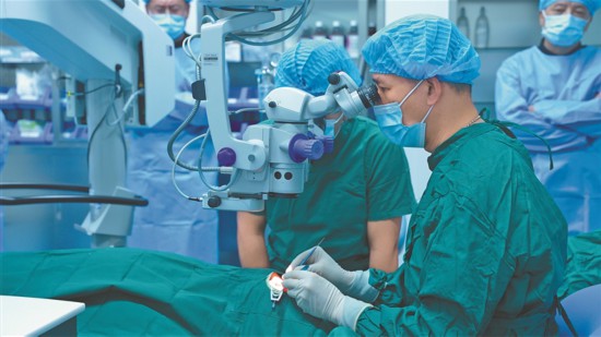 圖為醫(yī)護(hù)人員使用飛秒激光設(shè)備開(kāi)展手術(shù)。記者 劉斯宇 攝