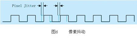 像素抖動(dòng)是由圖像采集卡的a/d轉(zhuǎn)換器的采樣時(shí)鐘的誤差產(chǎn)生的像元位置上的微小的錯(cuò)誤從而導(dǎo)致對(duì)距離測(cè)量的錯(cuò)誤。如圖6所示:
