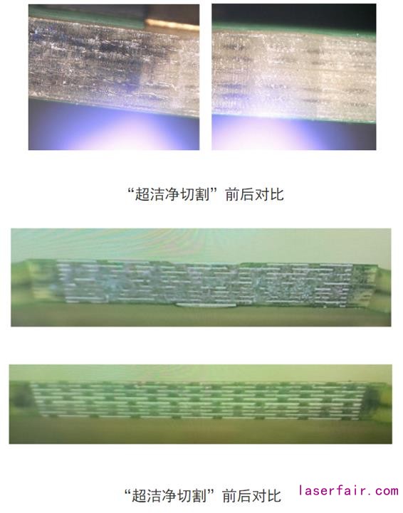 德中超潔凈切割技術(shù)的設(shè)備基于原有硬件平臺配置,無需對硬件升級改造,沒有額外的設(shè)備配件和耗材支出;整個流程利用特有的專業(yè)加工程序,實現(xiàn)自動化處理,切割輪廓定位精準(zhǔn),加工過程不需要任何輔助耗材,且無任何殘留。