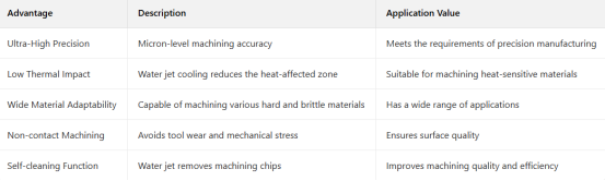 Compared with traditional processing methods, water-guided laser technology has significant advantages. Firstly, it can achieve ultra-high precision processing at the micron level, meeting the strict requirements of precision manufacturing for dimensional accuracy and surface quality. Secondly, the cooling effect of the water jet significantly reduces the heat-affected zone during the processing, avoiding thermal damage and deformation of the material, and is particularly suitable for processing heat-sensitive materials. In addition, water-guided laser technology has wide material adaptability and can process various hard and brittle materials such as metals, ceramics, composites, and semiconductors. Due to its non-contact processing method, it avoids tool wear and mechanical stress, ensuring excellent surface quality. At the same time, the water jet can effectively remove processing debris, keep the processing area clean, and further improve processing quality and efficiency.