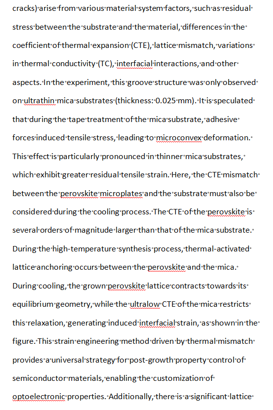 mismatch between the perovskite microplates and the mica substrate, inducing planar tensile strain in the CPB lattice to promote alignment with the mica lattice.