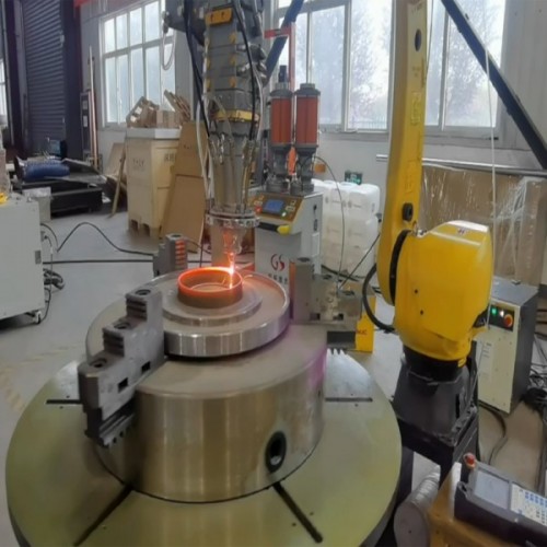 八軸聯(lián)動激光熔覆設備,是國盛激光自主研發(fā)的以機器人為運動核心,可適應各種復雜結(jié)構(gòu),和非標準零件的激光熔覆加工系統(tǒng)。該系統(tǒng)配置靈活多樣,根據(jù)客戶應用場景可配置不同規(guī)格的機器人,同時選配變位機、轉(zhuǎn)臺、滑臺以適應不同加工類型工件的激光熔覆加工及表面處理。設備主要由前端執(zhí)行機構(gòu)和后端設備組成,前端執(zhí)行機構(gòu)包括機械臂、變位機、電氣控制系統(tǒng)、激光熔覆頭、熔覆噴嘴組成;后端設備包括熔覆專用激光器、熔覆專用水冷機、穩(wěn)壓電源、送粉器等。