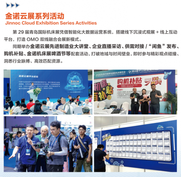 同期舉辦金諾云展先進(jìn)制造業(yè)大講堂、企業(yè)直播采訪、供需對(duì)接/“閑魚”發(fā)布、購機(jī)補(bǔ)貼、金諾機(jī)床展啤酒節(jié)等配套活動(dòng),打破地域與時(shí)間壁壘,即時(shí)參與精彩觀點(diǎn)碰撞、洞悉行業(yè)脈搏、高效匹配資源。