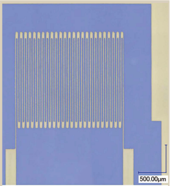 圖4:50nm厚度的鈦粘合劑將300至400 nm的銅層覆在肖特AF32玻璃基板上,通過PLR4加工金屬層形成電容結構。