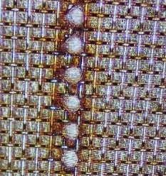 工藝要求:銅網(wǎng)與銅片連接,控制焊接過程減少斷絲現(xiàn)象,背面無擊穿,保證焊接強度及無脫落。