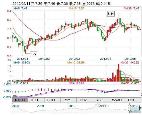 今 開: 7.36 成交量: 9073手 振 幅: 1.36% 最 高: 7.46 成交額: 671.39萬 換手率: 0.33% 最 低: 7.36 總市值: 21.03億 市凈率: 3.37 昨 收: 7.37 流通市值: ...