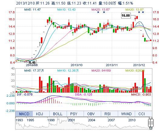 | 最 高: | 11.50 | 成交額: | 1.15億元 | 換手率: | 5.81% |