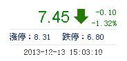 | 今 開: | 7.40 | 成交量: | 3.26萬手 | 振 幅: | 1.59% |