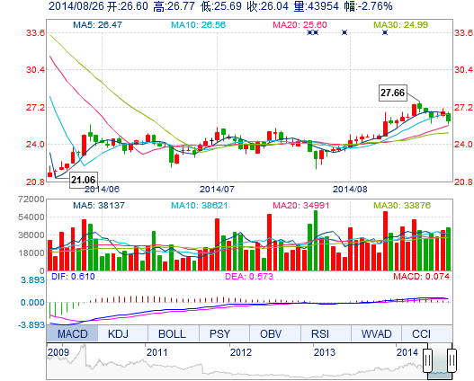 | 最 低: | 25.69 | 總市值: | 170.16億 | 市凈率: | 9.36 |