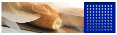 食品包裝紙微孔(左)與多點光斑