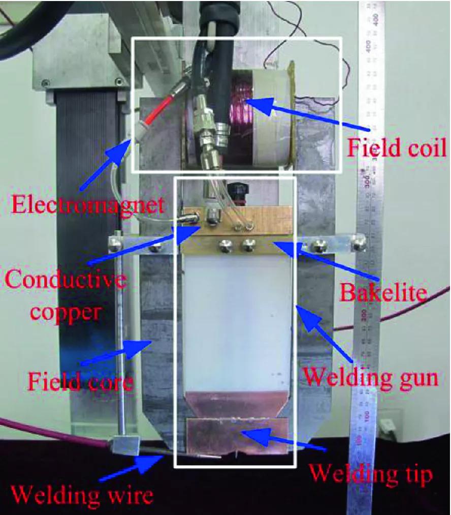 采用雙磁極以防止側(cè)壁熔合不足,并提高厚部件焊接的效率和質(zhì)量。電弧磁振蕩導(dǎo)致流經(jīng)兩側(cè)壁的電弧電壓和焊接電流發(fā)生變化,從而導(dǎo)致電弧熱量重新分布。磁場使焊接電弧擺動,將更多的熱量帶入側(cè)壁,確保側(cè)壁熔透。結(jié)果表明,溝槽側(cè)壁完全熔化,形成了良好的接頭。