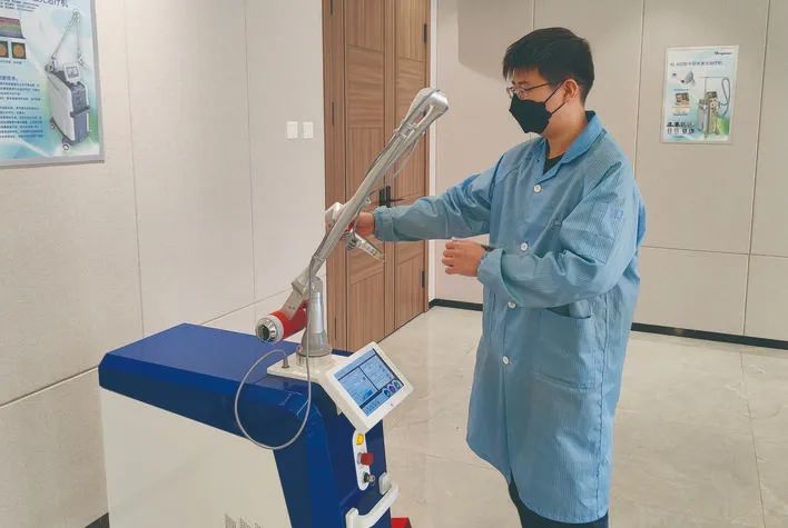 我市堅(jiān)定不移做大做強(qiáng)民營(yíng)經(jīng)濟(jì)的具體行動(dòng)計(jì)劃、“真金白銀”的惠企政策讓科英激光的員工們無(wú)不歡欣鼓舞。1月30日,在產(chǎn)品開(kāi)發(fā)部,研發(fā)工程師小孫正在調(diào)試公司最新獲批的首個(gè)國(guó)產(chǎn)超皮秒激光KL-M(P)型Q開(kāi)關(guān)Nd:YAG皮秒激光治療機(jī)?!斑@款設(shè)備主要是去除文身及色素治療,由于其峰值功率高、照射停留時(shí)間短,疼痛感也會(huì)減輕。”小孫說(shuō)。