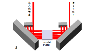 主放大器設(shè)計為兩級布局,第一級擔負著將小信號光功率急劇拔升,第二級負責將已獲得放大的光能進一步推高,二者均為innoslab放大器。第一級放大模塊設(shè)計為多通光路結(jié)構(gòu),以不少于5次的通過次數(shù)穿越激光增益介質(zhì)實現(xiàn)高增益放大效果;由于激光器的設(shè)計,尤其是多級放大架構(gòu)的激光器設(shè)計,須將放大布局作為一個整體通盤考慮,此第一級innoslab放大器并未片面追求放大功率,而是設(shè)計為放大輸出功率和光束質(zhì)量滿足后續(xù)第二級innoslab放大所需要的光強度匹配、空間分布匹配、光熱效應(yīng)可控,這與奧創(chuàng)光子百瓦產(chǎn)品家族的單級innoslab放大模塊光學(xué)設(shè)計思路不盡相同。