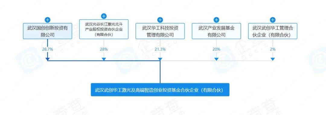 近日,武漢武創(chuàng)華工激光及高端智造創(chuàng)業(yè)投資基金合伙企業(yè)(有限合伙)成立,執(zhí)行事務(wù)合伙人為武漢武創(chuàng)華工管理合伙企業(yè)(有限合伙),注冊(cè)資本5億元,經(jīng)營范圍包含:私募股權(quán)投資基金管理、創(chuàng)業(yè)投資基金管理服務(wù)。企查查股權(quán)穿透顯示,該公司由華工科技全資子公司武漢華工科技投資管理有限公司等共同持股。