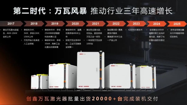 2020年,創(chuàng)鑫激光將萬瓦確定為公司的核心戰(zhàn)略方向,以“效率”為切入點(diǎn)率先發(fā)起“萬瓦風(fēng)暴”。內(nèi)部從核心器件技術(shù)的突破、激光器整機(jī)品質(zhì)的穩(wěn)定、萬瓦切割工藝的探索著手,外部聯(lián)動(dòng)下游集成商進(jìn)行機(jī)床結(jié)構(gòu)、控制系統(tǒng)、軟件算法的全面提升,同時(shí)為終端用戶提供萬瓦工藝培訓(xùn)及投產(chǎn)指導(dǎo),讓用戶安心采購順利投產(chǎn)。通過“技術(shù)+產(chǎn)品+生態(tài)+服務(wù)”一系列組合拳將整個(gè)萬瓦賽道打通,讓整個(gè)行業(yè)看到了前進(jìn)的方向。