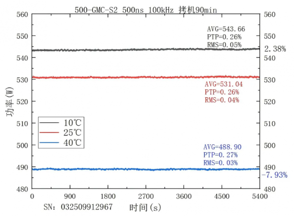 GMC-S2 500W 5mJ 不同環(huán)境溫度下功率穩(wěn)定性測(cè)試