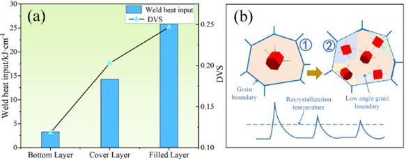 DVS與熱輸入關(guān)系:(a) 熱輸入與變體選擇之間的關(guān)系機(jī)制;(b) 在多個(gè)熱周期下變體選擇的示意圖。