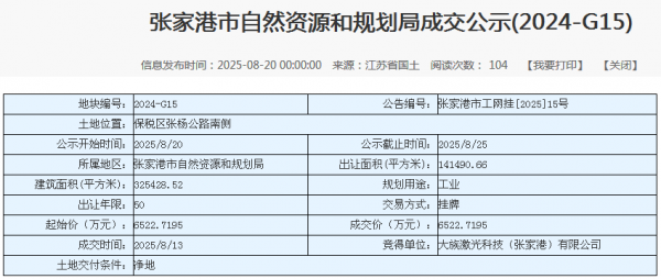 作為激光行業(yè)龍頭企業(yè),大族激光的每一步布局都牽動行業(yè)神經。2025年8月,大族激光科技(張家港)有限公司以6522.7195萬元競得張家港市保稅區(qū)141490.66平方米工業(yè)用地,為其華東區(qū)域產能擴充落下關鍵一子。該地塊采用江蘇首創(chuàng)的“標準地+雙信地+定制地”出讓模式,政府提供“三凈地”保障,實現(xiàn)“成交即發(fā)證、交地即開工”,企業(yè)則承諾固定資產投資強度不低于802萬元/畝,彰顯政企協(xié)同發(fā)展的高效性。