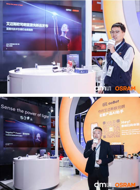 艾邁斯歐司朗工作人員現(xiàn)場介紹兩款藍(lán)激光產(chǎn)品,詮釋如何以精準(zhǔn)光源回應(yīng)多元應(yīng)用需求