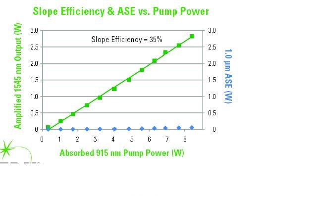SM-EYDF-6/125-HE光纖在斜率效率方面遠(yuǎn)遠(yuǎn)高于市場(chǎng)上其他同類產(chǎn)品,實(shí)驗(yàn)表明,915nm泵浦情況下,該光纖的斜率效率高達(dá)35%,975nm泵浦的斜率效率超過(guò)44%,這意味著用戶能夠輕松實(shí)現(xiàn)超過(guò)2W的高功率光纖放大器輸出。
