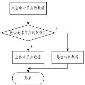 如圖6所示為ZigBee采集模塊數(shù)據(jù)傳輸?shù)牧鞒虉D。首先ZigBee采集模塊接收來(lái)自ZigBee網(wǎng)絡(luò)終端模塊的數(shù)據(jù)。然后判斷是不是傳遞給自己的數(shù)據(jù),如果是自己的數(shù)據(jù)則上傳相關(guān)的回復(fù)數(shù)據(jù),如果不是則按照自己發(fā)現(xiàn)的路由表中的地址以廣播的方式轉(zhuǎn)發(fā)來(lái)自ZigBee網(wǎng)絡(luò)終端模塊的數(shù)據(jù)。最后完成所有工作后進(jìn)入休眠模式,等待下次的訪問(wèn)。