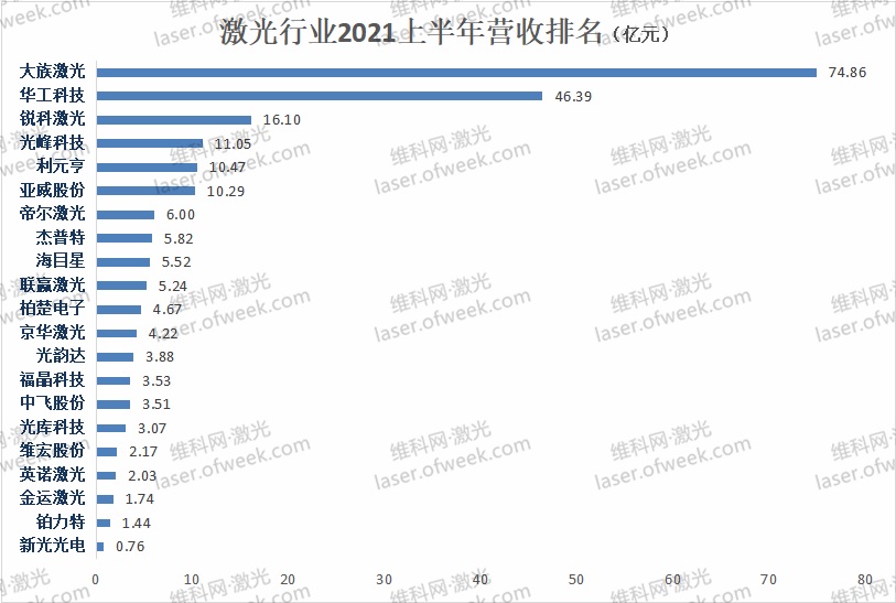 營(yíng)收排名:大族激光再度領(lǐng)跑,占21家公司總營(yíng)收的33.6%